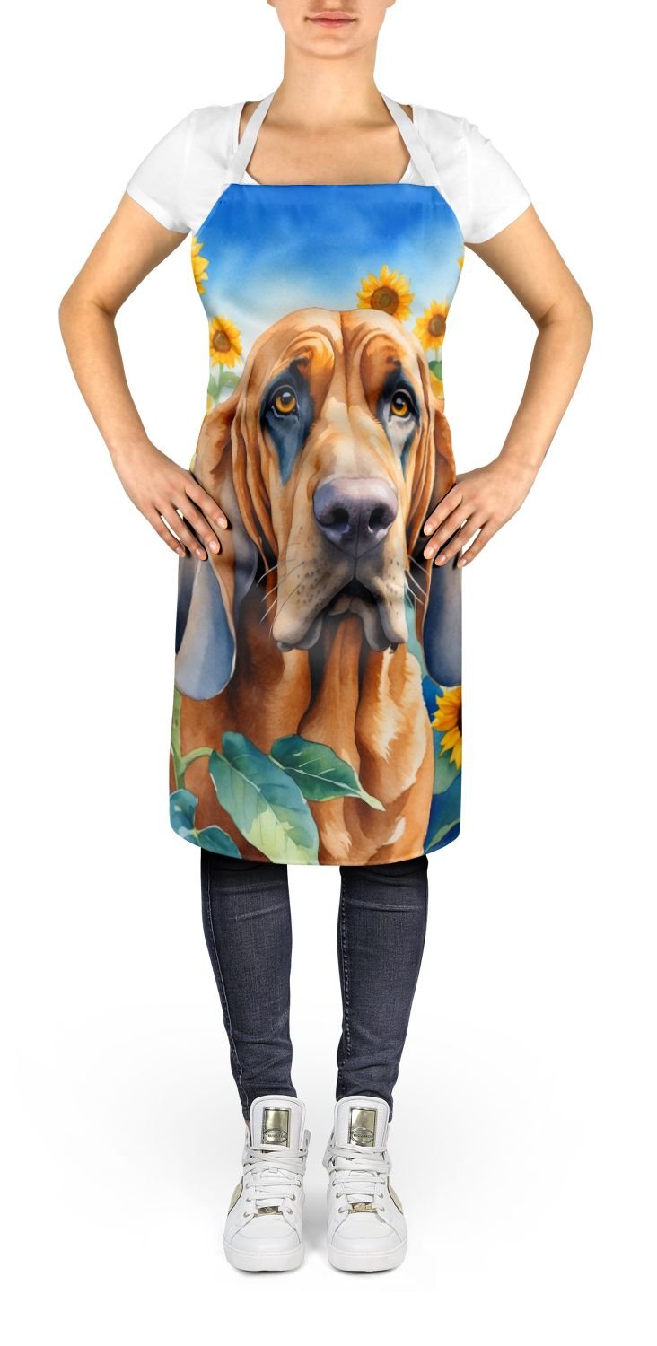 Bloodhound in Sunflowers Apron Cooking Kitchen Server Baking Crafts Gardening for Adult Women Men, Unisex, Large, Multicolor