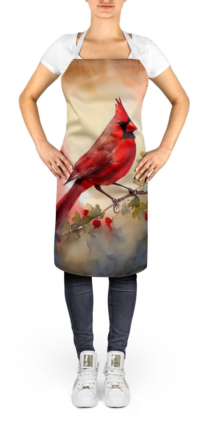 Apron featuring breed specific Cardinal artwork. Elevate your cooking, baking, and grilling experiences with our versatile Kitchen or BBQ Apron. This Bib Style apron isn't just limited to culinary activities - it also serves as an excellent baking apron, artist apron, server apron, gardening apron, or even a dog grooming apron. The apron showcases vibrant full-color artwork contributed by one of our talented artists, bringing a dash of style to your daily tasks. With dimensions of approximately 27"W x 30"H, it provides ample coverage to protect your clothing from spills and splashes. Our apron is meticulously crafted from 100% Ultra Spun Polyester, known for its durability and lightweight nature. The apron comes with white tie straps, ensuring a comfortable and adjustable fit for all. It's a perfect choice for kitchen apron enthusiasts, whether you are a woman or a man. Designed for easy maintenance, this apron is fully machine washable. The quick-drying polyester material actively reduces staining, keeping your apron looking fresh and new for longer. Our beautifully designed apron isn't just a functional kitchen accessory - it's a fashion statement in the culinary world!