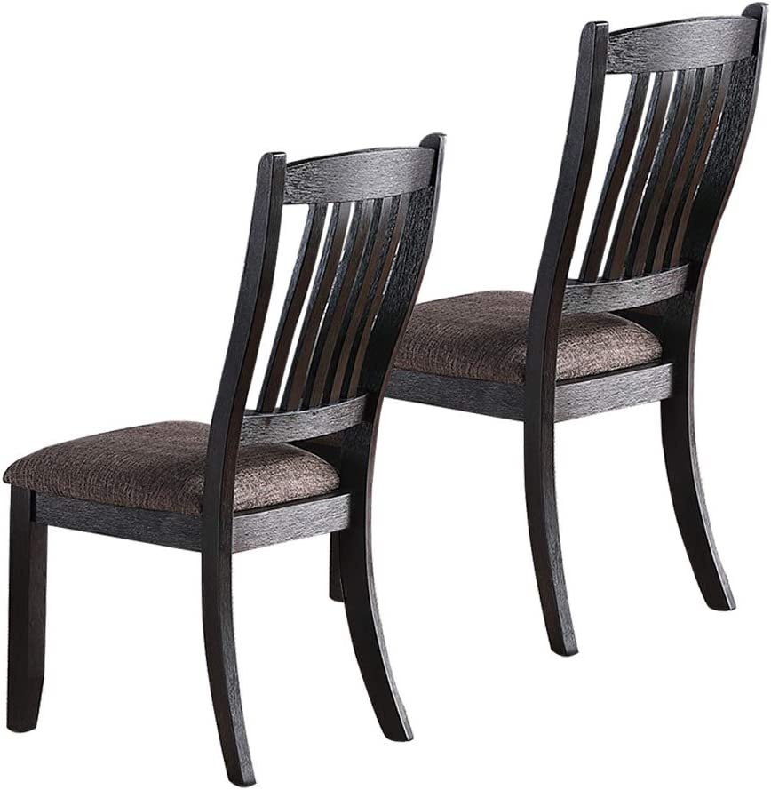 Dark Coffee Classic Wood Kitchen Dining Room Set of 2 Side Chairs Fabric upholstered Seat Unique Design Back