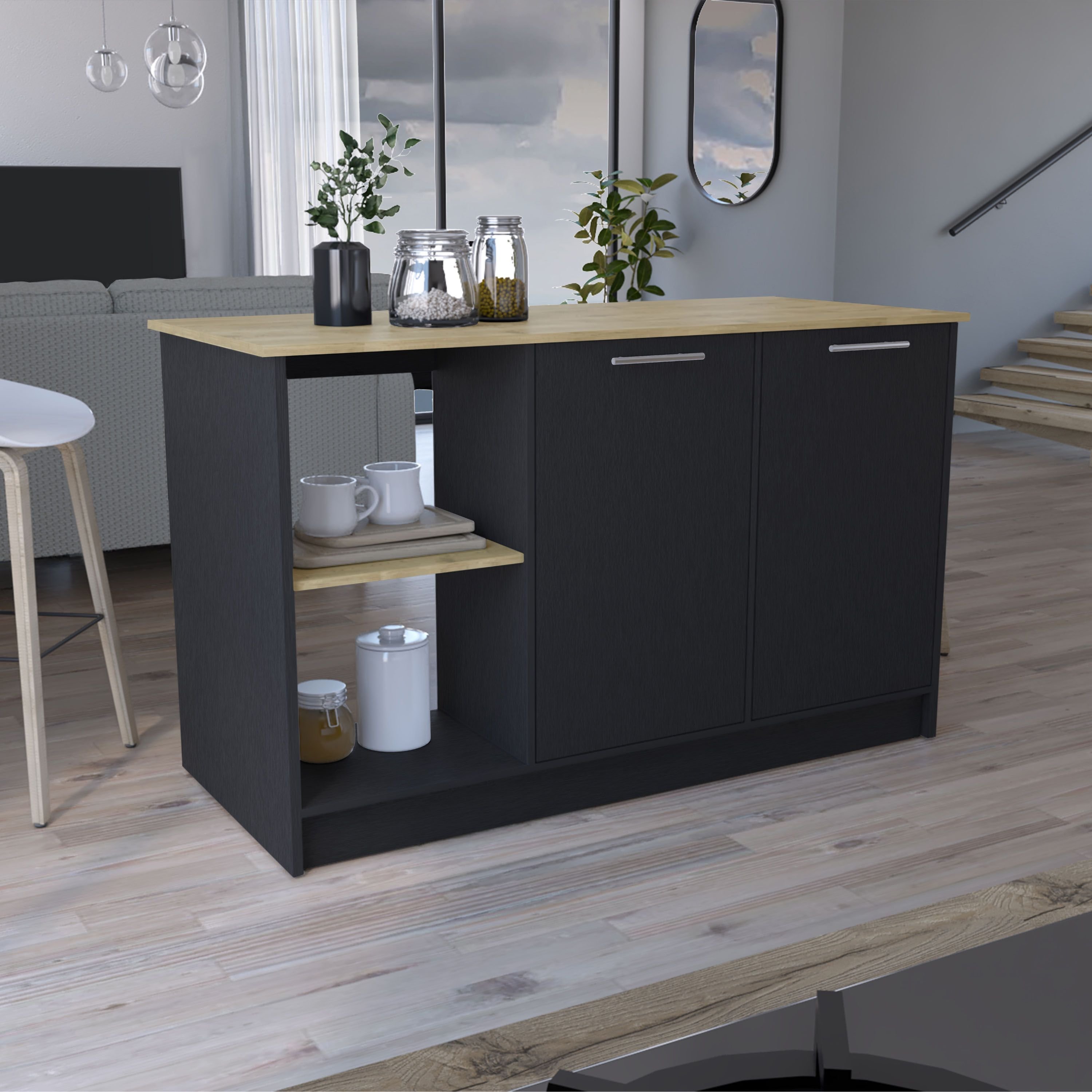 Juniper Kitchen Island with Large Top Surface, Double Door Cabinet, and Open Shelves