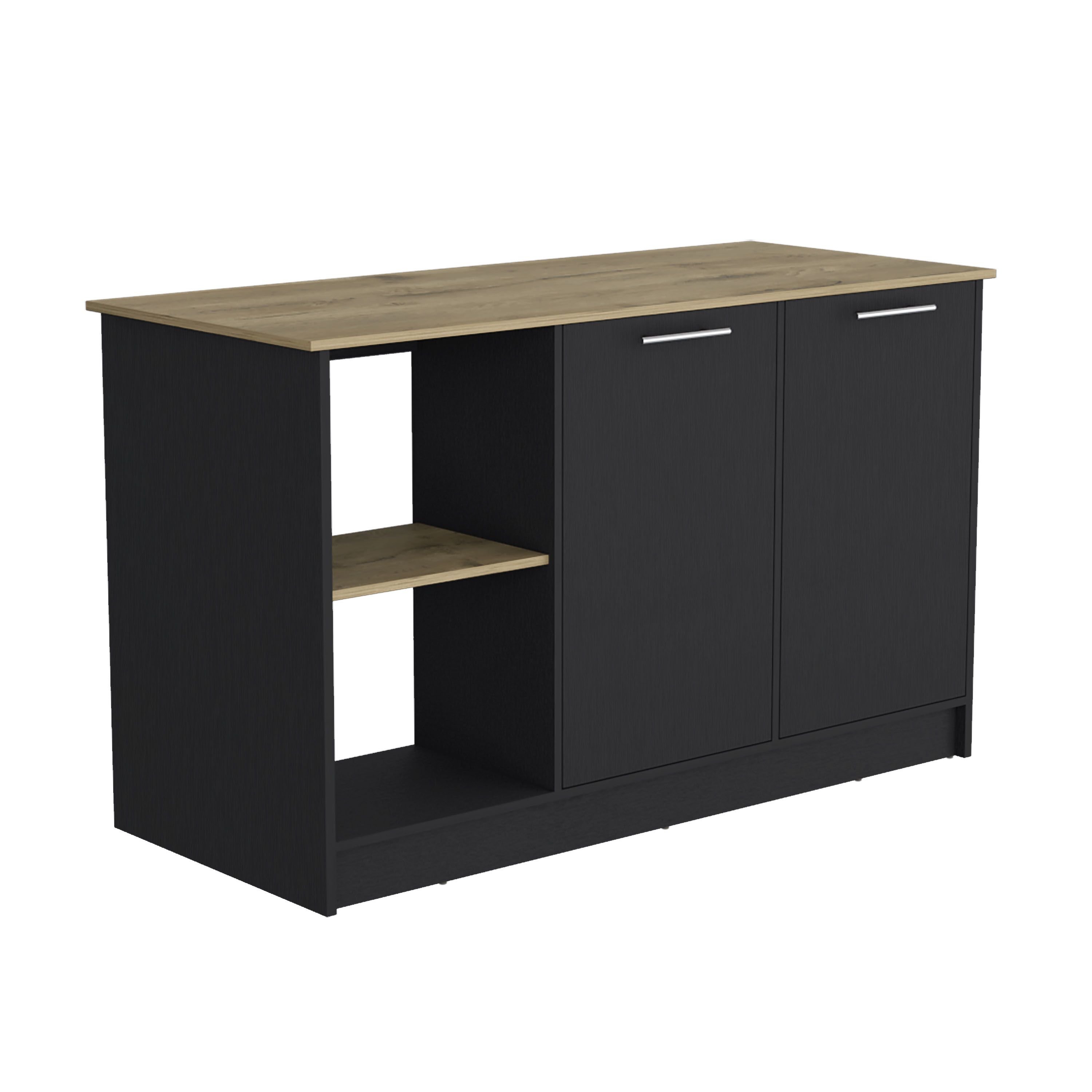 Home > Juniper Kitchen Island with Large Top Surface, Double Door Cabinet, and Open Shelves