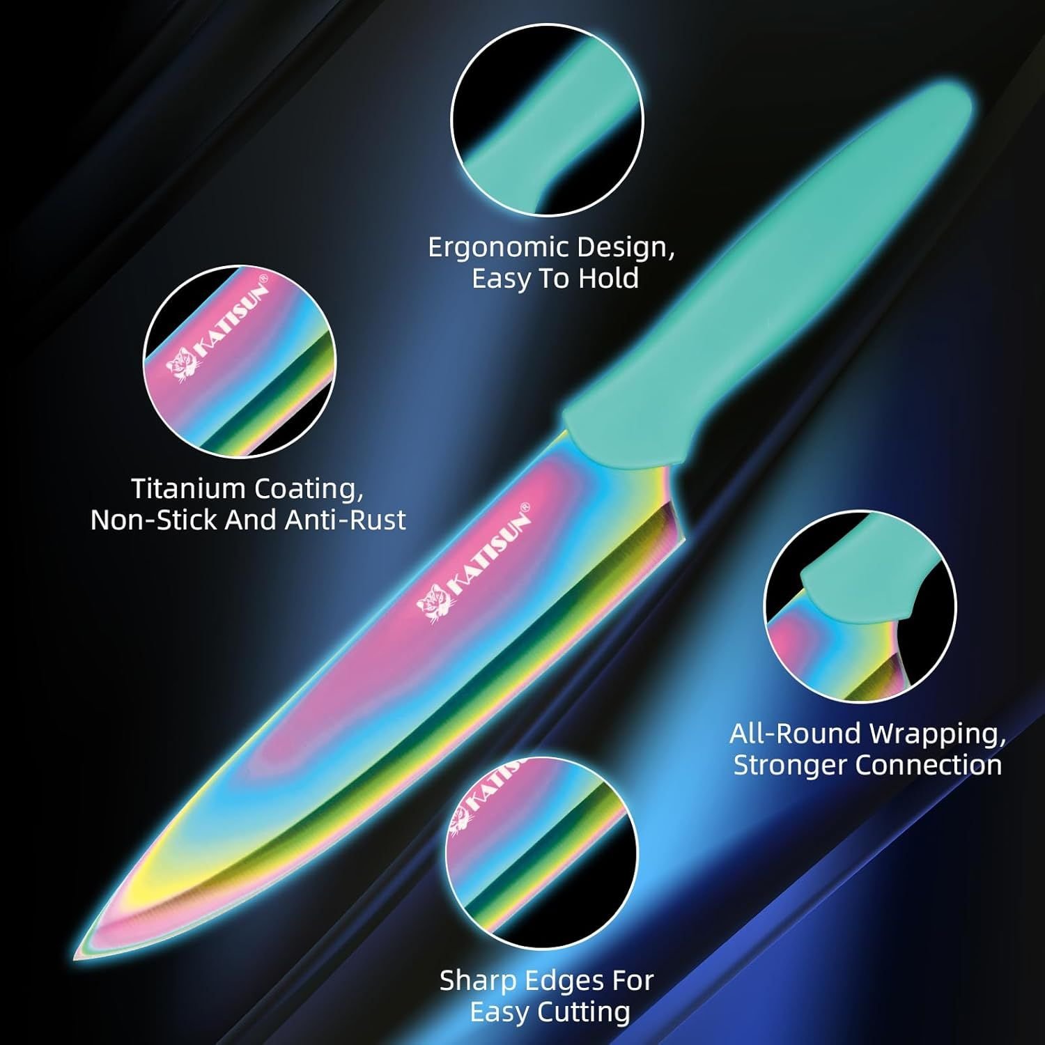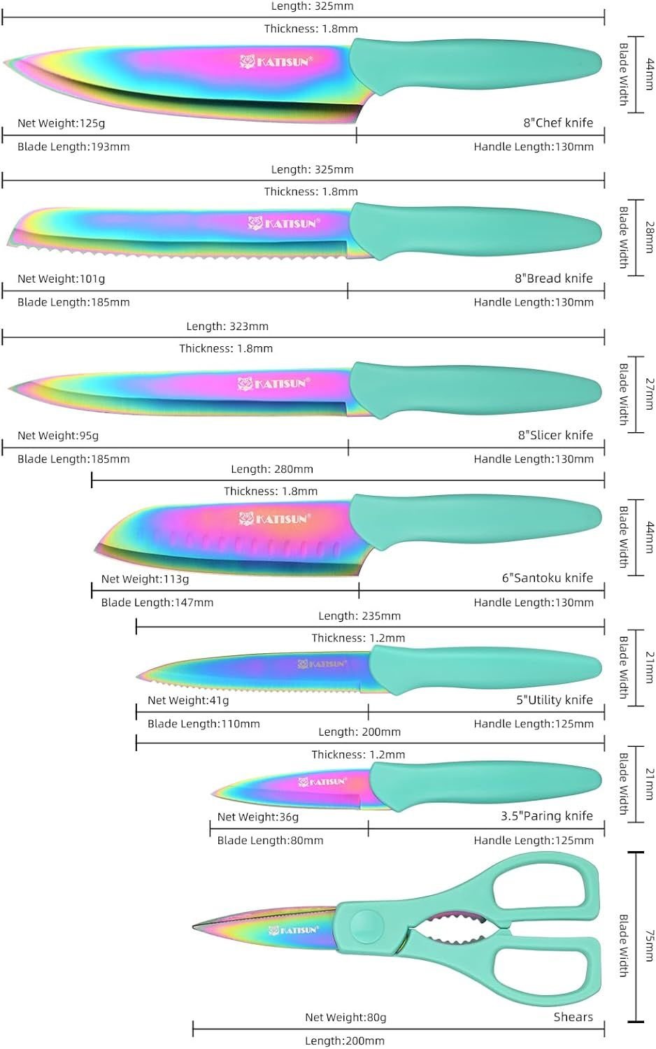 Kitchen Knife Set with Guards, 13 Piece Rainbow Titanium Coated Stainless Steel Boxed Knives Set, Anti-Rust and Dishwasher Safe Kitchen Knife Set with Guards, 13 Piece Rainbow Titanium Coated Stainless Steel Boxed Knives Set, Anti-Rust and Dishwasher Safe Kitchen Knife Set with Guards, 13 Piece Rainbow Titanium Coated Stainless Steel Boxed Knives Set, Anti-Rust and Dishwasher Safe