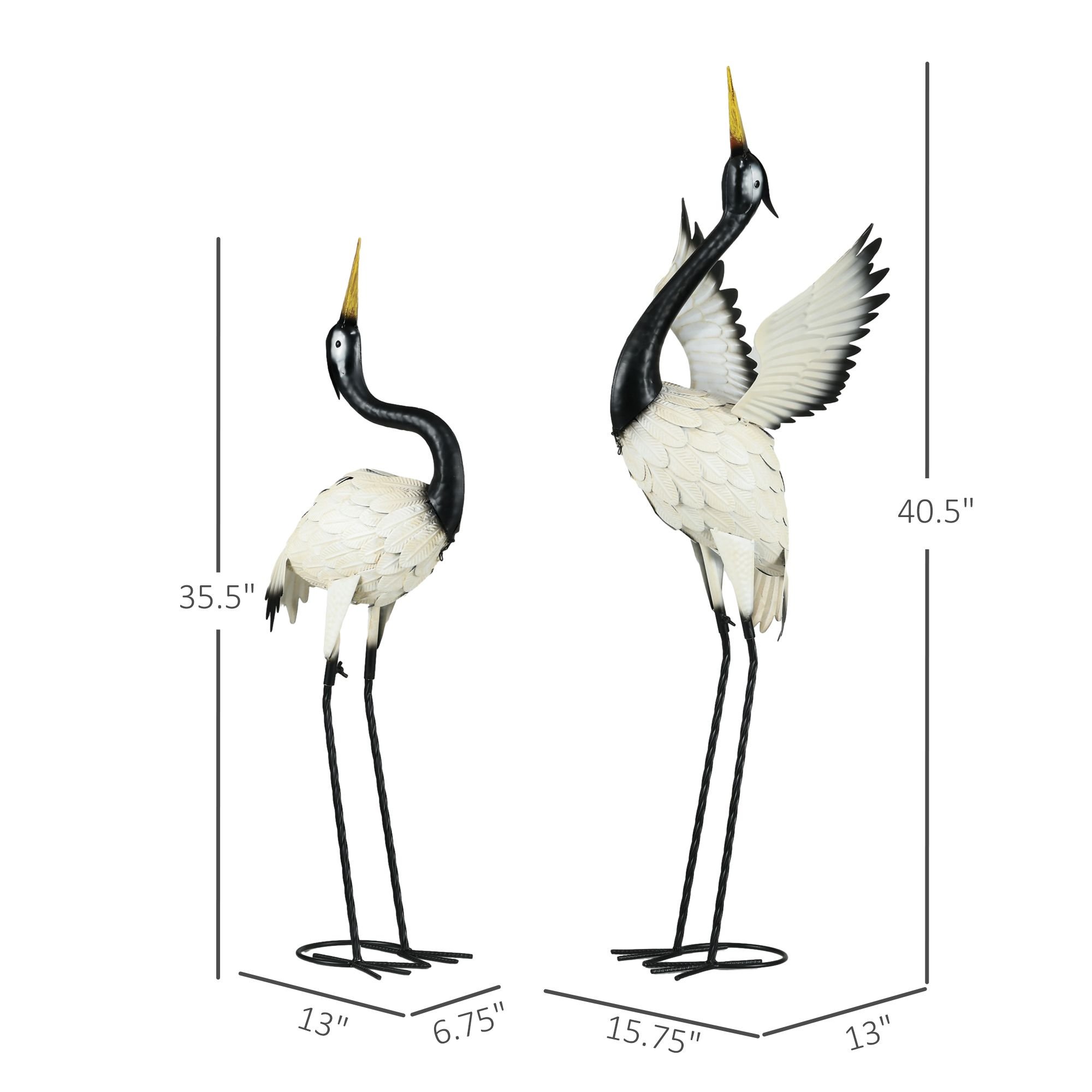 Outsunny Set of 2 Garden Sculptures, Heron Garden Statues for Lawn, Patio, Backyard Decoration, 35.5" & 40.5", White & Black