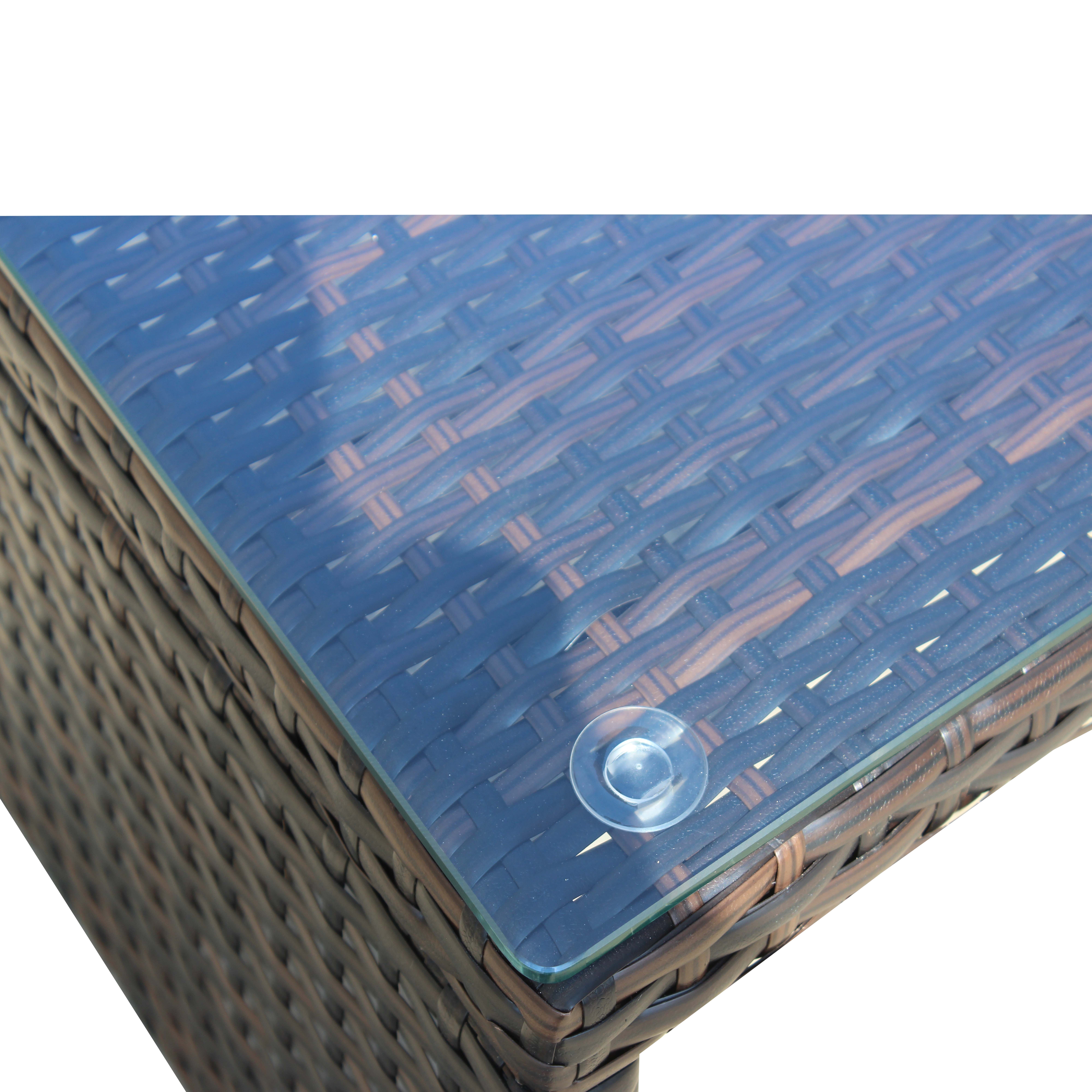 SpecificationTwo Seater Sofa L 47.5x W23.25xH 25 in;Lounger Sofa : L46.9xW 23 x H25in ; Coffee Table:L30.1x W17.5x H15inThis wicker Sectional Sofa Set include1 *Two Seater Sofa + 1*Lounger Sofa + 1 *Coffee Table with clear tempered glass + 2*seat cushions+3 * back cushionsDetail Product DimensionPlease refer to the Size imageManner of packing1 set/ctnPackage Dimension and WeightPackage 1:46.8 * 14.2 * 26 in. GW:70 lbs NW:62lbsWeight CapacityWicker Lounger:250lbs,Tea table :180 lbsMaterialPE Rattan+Steel+Polyes+glasster fabric+sponge+temperedColorBrown wicker, Beige cushioFrame/Cushion DurabilityWater Resistant /UV resistantZipper for cushionYesAdditional Tools RequiredAll Tools Included