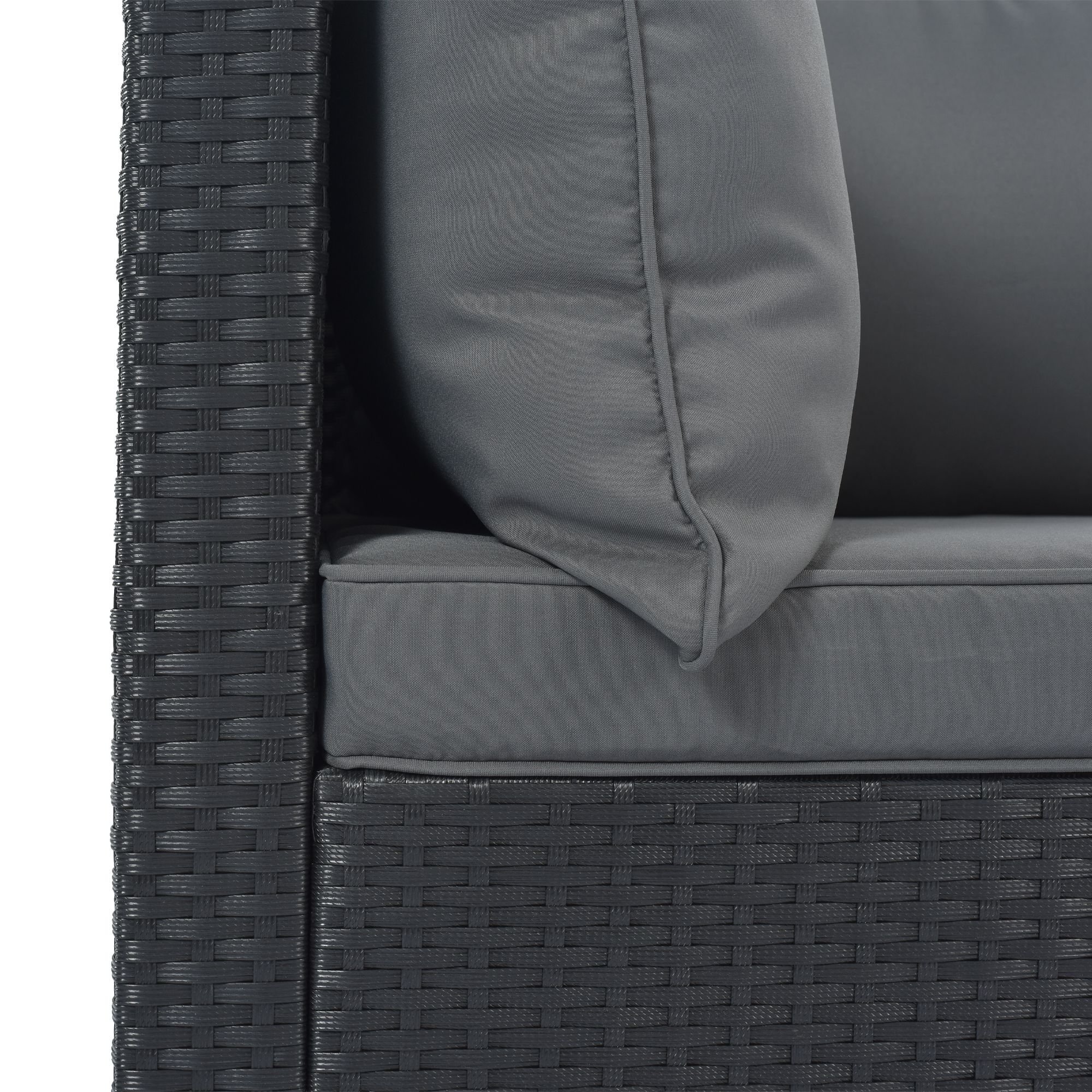 1.Perfect Design :This wicker sofa set is made of sturdy iron frame and top quality wicker, including 1 corner sofa, 4 single sofa, 2 ottomans and 1 coffee table. Gray hand woven wicker with the comfortable look and texture of natural wicker, thicker cushions and pillows for your ultimate enjoyment, safe and tough tempered glass, they all have high UV resistance and water resistance for years of use.