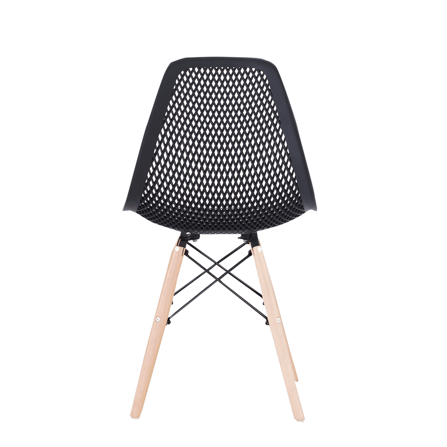 2.Quality PP Seat Shells and Wooden Legs:The seat shell is made of high quality PP material, which has high impact resistance and good toughness. Designed with solid wooden walnut legs, more sturdy and looks more beautiful. Black strengthened metal frame supports on the botom of the chairs to ensure s