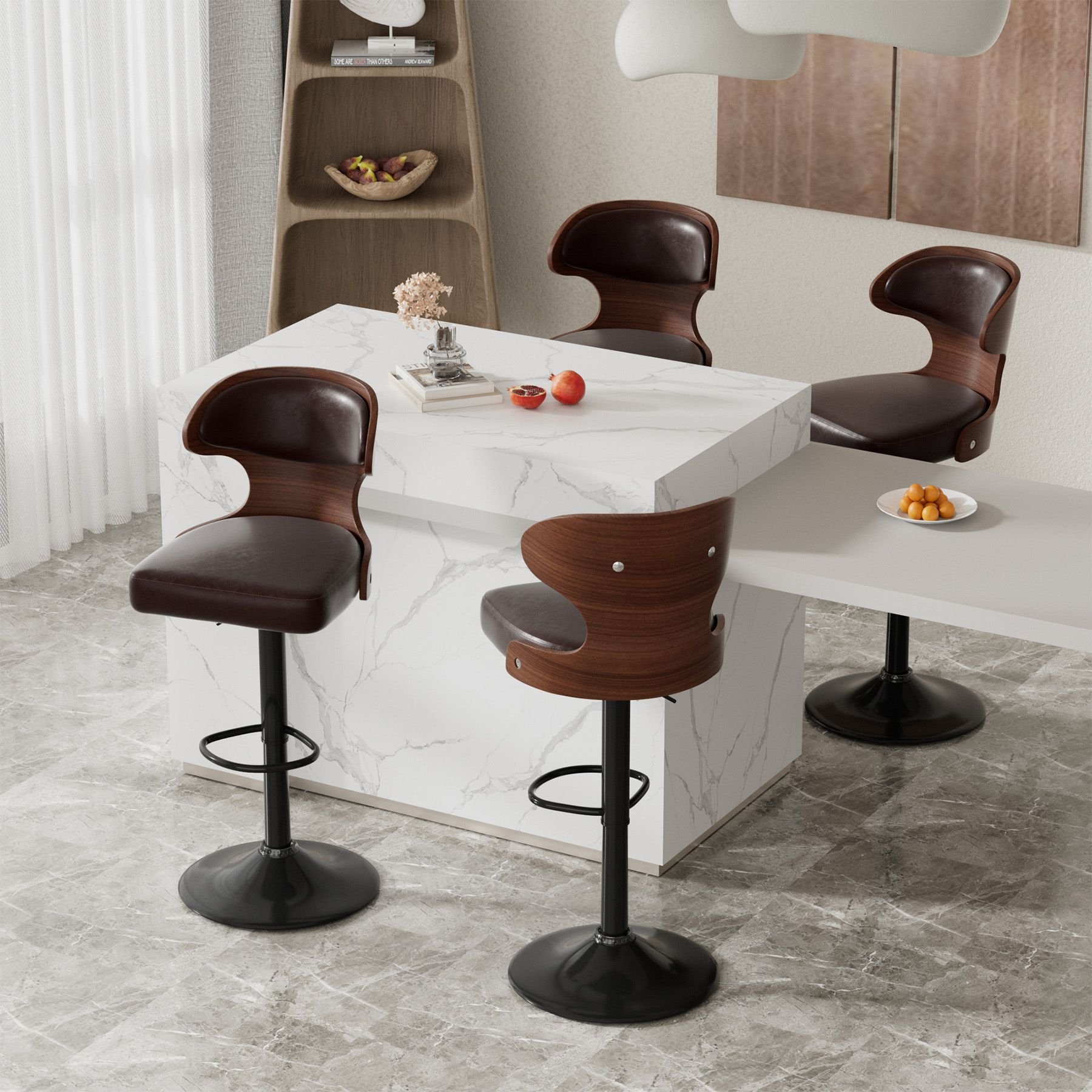 Bar Stools Set of 2 Seat Adjustable Height 25.2-33.8IN - Bentwood Swivel Barstools with Back & Footrest - PU Leather Upholstered Bar Chair for Bar