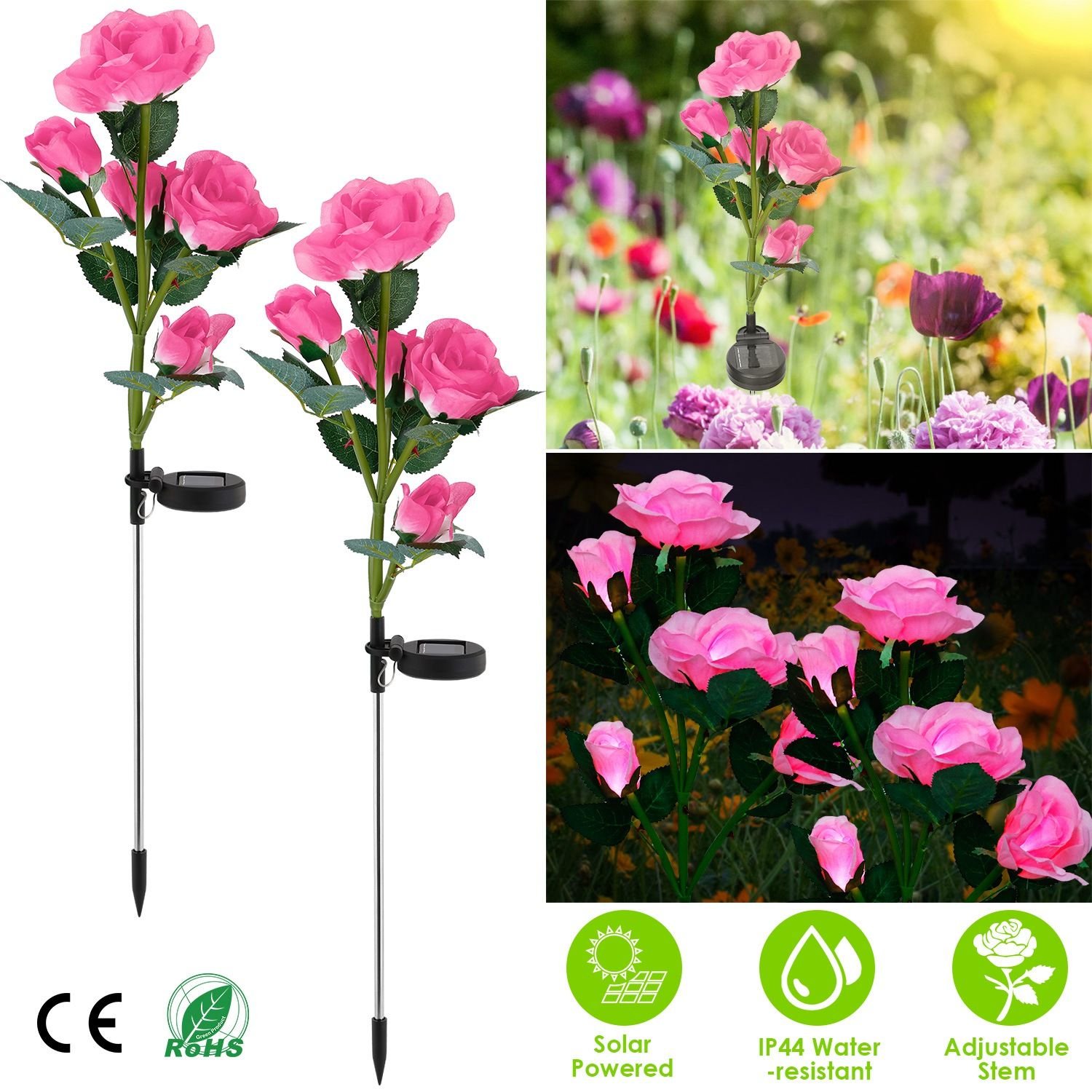 *IP44 WATER-RESISTANT & WEATHER-RESISTANT: The flower solar garden lights are designed with high-quality stainless steel poles, also featured with IP44 water-resistant performance, heatproof and weather-resistant, 2Pcs rose lights are able to survive heat, rain, cold and frost.